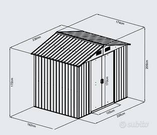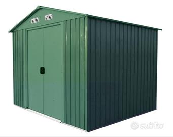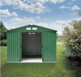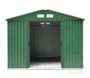 Perfetta per il ricovero degli attrezzi da giardino. Porta a due ante scorrevoli.