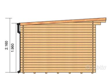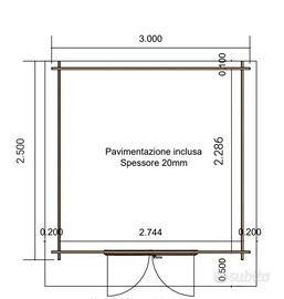 Casetta da giardino prefabbricata. In legno massello (6.2 mq spessore 28 mm) con 1 vano. Dimensioni esterne 300 cm x 250 cm Dimensioni interne 274 cm x 228 cm Altezza massima 196 cm Altezza massima 216 cm Legno: listoni di abete nordico, incastro tipo blockhouse Porta da 177 cm x 131 cm (due ante con vetro) Finestre: no Pareti: listoni di abete nordico spessore 28 mm. Tetto: listoni di abete nordico, spessore 20 mm. Sporgenza tetto 50 cm fronte davanti- 20 cm laterale. Pavimentazione inclusa - spessore 20 mm Mai montata, nuova. Comprende: Scossaline, grondaia, chiodi, tegole canadesi rosse. Ritiro a mano, possibilità di consegna a Genova o dintorni (100 euro)
