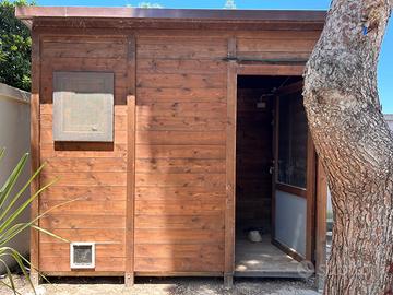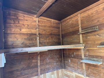 Casetta in legno da giardino in ottimo stato fatta fare da falegname con tetto coibentato, già con impianto elettrico predisposto e luci e prese interne.