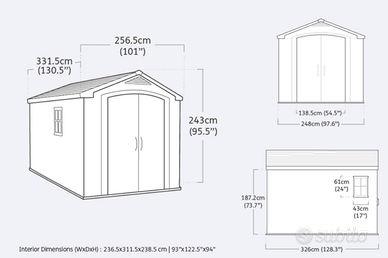 Dimensione esterne: Altezza 243cm - Profondità 326cm - Larghezza 248cm
