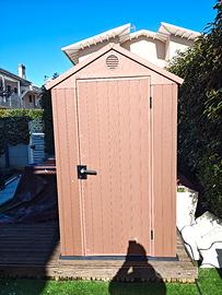 Bellissime e resistente casetta da giardino Keter in resina marrone acquistata tramite Amazon per € 369,00. Vendo per rifacimento e cambio configurazione giardino. praticamente nuova colore e struttura perfetti. Visto l ingombro non spedisco. Già montata e facilmente trasportabile non pesa molto, le misure sono esposte in foto. Per qualsiasi ulteriore info contattatemi pure.