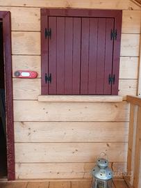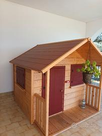 Vendo bellissima casetta in legno artigianale per bambini. Dotata di tre finestre con cerniere per la chiusura e una porta. Pavimentazione in finto parquet, luce interna e campanello. Dotata anche di piccolo spazio esterno dove è possibile posizionare vasi o qualsiasi altro ornamento. Se ritirate personalmente e vi trovate in provincia di Ancona o zone limitrofe, posso smontarla e poi riassemblarla personalmente ma ad un prezzo leggermente maggiore. Dimensioni: 160×160×160 la porta è alta 1 metro. Per qualsiasi altra informazione, contattate pure.