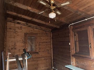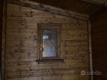 La casetta e’ montata su una pedana che rende possibile lo spostamento della casetta e l’installazione in diversi contesti.