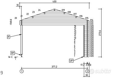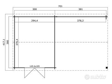 prof.400 cm, parete casetta 380cm, tetto 319cm