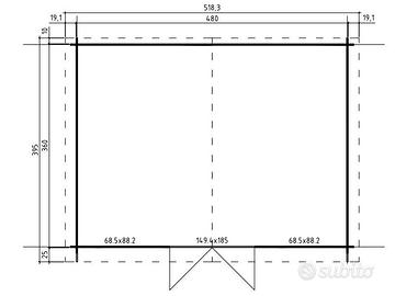larghezza 500 cm parete 480cm tetto 518