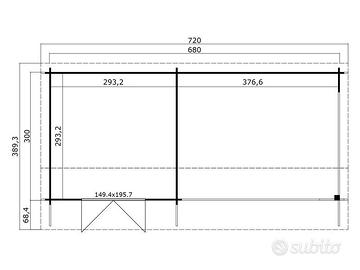 largh.700 cm parete 680 cm tetto 720cm