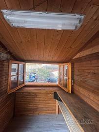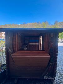 Vendo casetta di legno, utilizzabile come biglietteria, totalmente coimbientata (pareti, soffitto e pavimento). Munita di webasto per riscaldamento. Mai utilizzata. Misure: 180x280cm Vendo per inutilizzo.