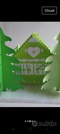 Casetta di Natale fatta a mano con cartoncino Bristol, misura della base cm. 18x21, altezza massima cm. 13, fatta da me.
