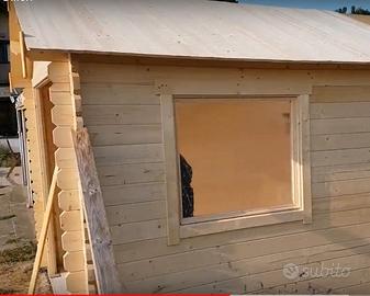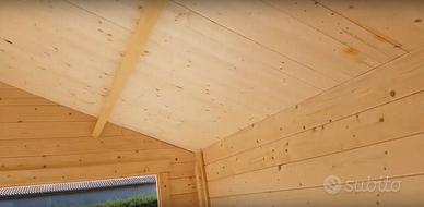 Pino nordico certificato. Spess. pareti 34 mm doppio incastro maschio/femmina.