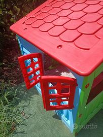Casetta per bambini larga 1,30/110 e alta nel punto centrale 116 cm.In ottimo stato.