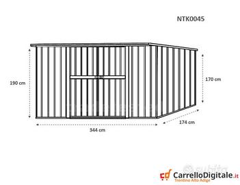 Il box prefabbricato 345 x 186 cm viene venduto nuovo con garanzia e con fattura o ricevuta fiscale. Viene consegnato all'indirizzo che ci verrà comunicato in kit di montaggio comprensivo di tutta la ferramenta necessaria a montarlo. Box casetta, garage, rimessa attrezzi, deposito giardino, baracca rimessaggio legname, prefabbricato in lamiera di Acciaio Zincata grecata con Portone NUOVO. Box in acciaio da utilizzare come riparo moto, bici, quad, frese e utensili vari SPEDIZIONE IN TUTTA ITALIA INCLUSA NEL PREZZO -Dimensioni esterne (incluso tetto): 3.45 m (Larghezza) x 1.86 m (Lunghezza) x 1.92 m (Altezza) -Dimensioni esterne (solo perimetro): 3.44 m (Larghezza) x 1.74 m (Lunghezza) x 1.92 m (Altezza Max) -Dimensioni interne: 3.40 m (Larghezza) x 1.70 m (Lunghezza) x 1.90 m (Altezza Max) -Altezza della parete: 1.90 m -Dimensioni porta anteriore: 1.66 m (Larghezza) x 1,85 m (Altezza) (2 porte) -Peso struttura: 98 kg -Metri quadri: 6.42 -Spessore pannelli: 0,32 mm -Spessore profili: 0,70 mm Telefono/Whatsapp: A soli 482 euro IVA, spedizione ed assicurazione sulla spedizione inclusi nel prezzo Possibilità di acquisto con pagamento alla consegna (SOLO CONTANTI no assegni) Attenzione, il metallo utilizzato non è ferro o alluminio ma acciaio zincato. Il capanno da giardino in questione non è coibentato (pannelli sandwich) ma può essere modificato facilmente e con una spesa minima. La casetta in lamiera è composta da profili e pannelli in acciaio zincato e verniciato per resistere alle intemperie. A differenza di quelli in legno i box in lamiera zincata non necessitano di manutenzione Contattaci subito per avere maggiori informazioni e scoprire altri modelli che potrebbero fare al caso tuo Oppure inviaci un messaggio con il tuo numero e ti richiameremo non appena possibile Telefono/Whatsapp: