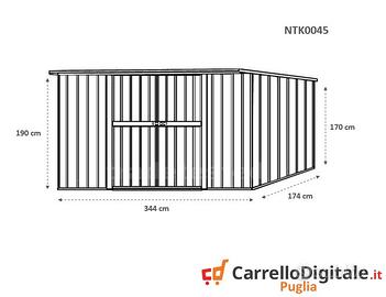 * Dimensioni esterne (incluso tetto): 3.45 m (Larghezza) x 1.86 m (Lunghezza) x