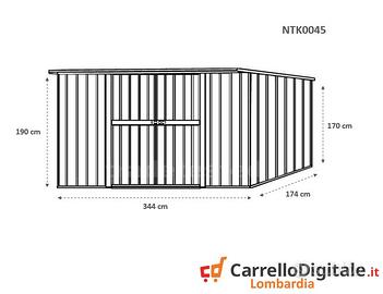 * Dimensioni esterne (incluso tetto): 3.45 m (Larghezza) x 1.86 m (Lunghezza) x