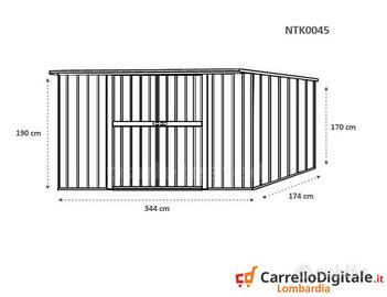 Il box prefabbricato 345 x 186 viene venduto nuovo con garanzia e con fattura o ricevuta fiscale. Viene consegnato all'indirizzo che ci verra' comunicato in kit di montaggio comprensivo di tutta la ferramenta necessaria a montarlo. Box casetta, garage, rimessa attrezzi, deposito giardino, baracca rimessaggio legname, prefabbricato in lamiera di Acciaio Zincata grecata con Portone NUOVO. Box in acciao da utilizzare come riparo moto, bici, quad, frese e utensili vari SPEDIZIONE IN TUTTA ITALIA INCLUSA NEL PREZZO * Dimensioni esterne (incluso tetto): 3.45 m (Larghezza) x 1.86 m (Lunghezza) x 1.92 m (Altezza) * Dimensioni esterne (solo perimetro): 3.44 m (Larghezza) x 1.74 m (Lunghezza) x 1.92 m (Altezza Max) * Dimensioni interne: 3.40 m (Larghezza) x 1.70 m (Lunghezza) x 1.90 m (Altezza Max) * Altezza della parete: 1.90 m * Dimensioni porta anteriore: 1.66 m (Larghezza) x 1,85 m (Altezza) (2 porte) * Peso struttura: 98 kg * Metri quadri: 6.42 * Spessore pannelli: 0,32 mm * Spessore profili: 0,70 mm Telefono/Whatsapp: A soli 482 euro IVA, spedizione ed assicurazione sulla spedizione inclusi nel prezzo Possibilita' di acquisto con pagamento alla consegna (SOLO CONTANTI no assegni) Attenzione, il metallo utilizzato non e' ferro o alluminio ma acciaio zincato. Il capanno da giardino in questione non e' coibentato (pannelli sandwich) ma puo' essere modificato facilmente e con una spesa minima. La casetta in lamiera e' composta da profili e pannelli in acciaio zingato e verniciato per resistere alle intemperie. A differenza di quelli in legno i box in lamiera zincata non necessitano di manutenzione Telefono/Whatsapp: