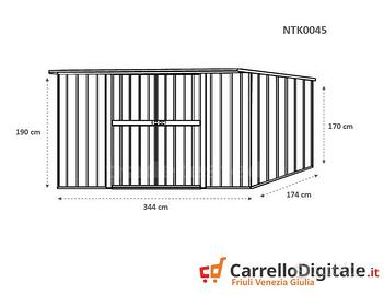 * Dimensioni esterne (solo perimetro): 3.44 m (Larghezza) x 1.74 m (Lunghezza)