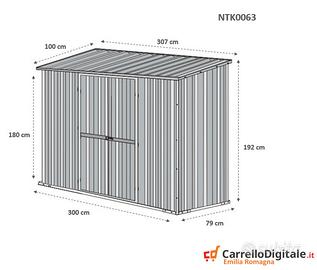 Il box prefabbricato 307 x 100 viene venduto nuovo con garanzia e con fattura o ricevuta fiscale. Viene consegnato all'indirizzo che ci verra' comunicato in kit di montaggio comprensivo di tutta la ferramenta necessaria a montarlo. Box garage casetta prefabbricato in lamiera di Acciaio Zincata grecata con Porta NUOVO, perfetto per il giardino usato come capanno per ricovero rimessa attrezzi. SPEDIZIONE IN TUTTA ITALIA INCLUSA NEL PREZZO * Dimensioni esterne (incluso tetto): 3.07 m (Larghezza) x 1.00 m (Lunghezza) x 1.92 m (Altezza) * Dimensioni esterne (solo perimetro): 3.07 m (Larghezza) x 0.79 m (Lunghezza) x 1.90 m (Altezza Max) * Dimensioni interne: 3.03 m (Larghezza) x 0.75 m (Lunghezza) x 1.90 m (Altezza Max) * Altezza della parete: 1.90 m * Metri Quadri: 3.07 mq * Dimensioni porta anteriore: 1.48 m (Larghezza) x 1,75 m (Altezza) (2 porte) * Spessore pannelli: 0,32 mm * Spessore profili: 0,70 mm * Peso struttura: 75 KG Ca. Telefono/Whatsapp: A soli 433 euro IVA, spedizione ed assicurazione sulla spedizione inclusi nel prezzo Possibilita' di acquisto con pagamento alla consegna (SOLO CONTANTI no assegni) Attenzione, il metallo utilizzato non e' ferro o alluminio ma acciaio zincato. Il box in acciao in questione non e' coibentato (pannelli sandwich) ma puo' essere modificato facilmente e con una spesa minima. La casetta da esterno e' composta da profili e pannelli in acciaio zingato e verniciato in maniera da poter resistere alle intemperie. A differenza di quelli in legno i box in lamiera zincata non necessitano di nessuna manutenzione Telefono/Whatsapp: