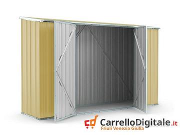 Il box prefabbricato 307 x 100 viene venduto nuovo con garanzia e con fattura o ricevuta fiscale. Viene consegnato all'indirizzo che ci verra' comunicato in kit di montaggio comprensivo di tutta la ferramenta necessaria a montarlo. Box garage casetta prefabbricato in lamiera di Acciaio Zincata grecata con Porta NUOVO, perfetto per il giardino usato come capanno per ricovero rimessa attrezzi. SPEDIZIONE IN TUTTA ITALIA INCLUSA NEL PREZZO * Dimensioni esterne (incluso tetto): 3.07 m (Larghezza) x 1.00 m (Lunghezza) x 1.92 m (Altezza) * Dimensioni esterne (solo perimetro): 3.07 m (Larghezza) x 0.79 m (Lunghezza) x 1.90 m (Altezza Max) * Dimensioni interne: 3.03 m (Larghezza) x 0.75 m (Lunghezza) x 1.90 m (Altezza Max) * Altezza della parete: 1.90 m * Metri Quadri: 3.07 mq * Dimensioni porta anteriore: 1.48 m (Larghezza) x 1,75 m (Altezza) (2 porte) * Spessore pannelli: 0,32 mm * Spessore profili: 0,70 mm * Peso struttura: 75 KG Ca. Telefono/Whatsapp: A soli 433 euro IVA, spedizione ed assicurazione sulla spedizione inclusi nel prezzo Possibilita' di acquisto con pagamento alla consegna (SOLO CONTANTI no assegni) Attenzione, il metallo utilizzato non e' ferro o alluminio ma acciaio zincato. Il box in acciao in questione non e' coibentato (pannelli sandwich) ma puo' essere modificato facilmente e con una spesa minima. La casetta da esterno e' composta da profili e pannelli in acciaio zingato e verniciato in maniera da poter resistere alle intemperie. A differenza di quelli in legno i box in lamiera zincata non necessitano di nessuna manutenzione Telefono/Whatsapp: