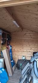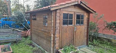 casetta da giardino in ottime condizioni con necessità mano di impregnante esternamente, in legno ad incastro ingombro esterno 240 x 290 cm spazio utile interno 215 x 265 cm. la casetta verrà smontata al momento della vendita e ritiro in logo.