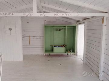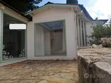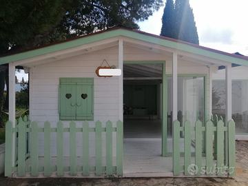 Casetta in legno suddivisa in 2 ambienti, dotata di vetrate (come da immagine)
