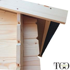 I listelli sottopavimento che poggiano a terra hanno subito un trattamento di impregnazione in autoclave, in modo da rendere la casetta più resistente a funghi, muffe ed agenti atmosferici.