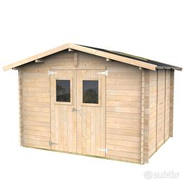 Casetta in legno Block House con pareti in perlina d'abete naturale ad incastro sp 25 mm.