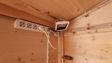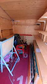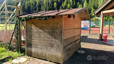 Vendo per inutilizzo ex casetta del Mercatino di Natale in ottimo stato costruita su misura con scaffali interni, impianto elettrico, luci interne ed esterne. Misure 300x200 H245. Trasporto a carico dell'acquirente.