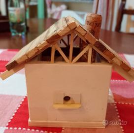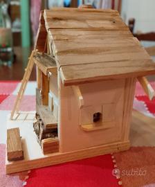 Casetta in legno fatta a mano, con porta incenso nel camino, ideale come oggetto di arredo e profumatore ambiente.