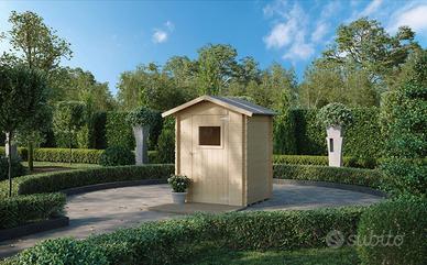 Casetta in legno Block House con pareti in perlina d'abete naturale ad incastro sp.16 mm e armatura di rinforzo;