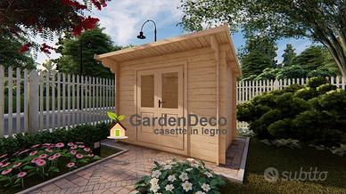 Casetta in legno di abete bianco nordico naturale, perfetta come ripostiglio per attrezzi e rimessa per attrezzi da giardino, oppure come casetta da bordo piscina. L'acquisto di questo prefabbricato in legno esclude la copertura tetto, però nel nostro catalogo si possono trovare tegole in bitume di tipo canadese, insieme a impregnanti di diversi colori, terrazze e altri accessori per migliorare la casetta in legno in base ai tuoi gusti.