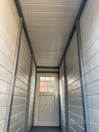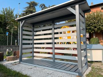 Casetta con struttura in legno lamellare adatta per biciclette Perlinato di prima scelta con doppio smusso. Porte con telaio in legno lamellare e vetro da 5 mm Tetto con perlinato , guaina ardesiata e grondine laterale Vernice all’acqua (colore a scelta ) piu la finitura per esterno e interno SI FA TUTTO SU MISURA PER INFORMAZIONI CHIAMARE AL Mail nicolasvicente@hotmail.it