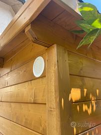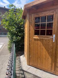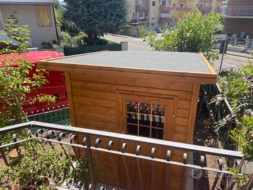 CASETTA IN LEGNO AD ANGOLO FATTA SU MISURA PORTA CON TELAIO IN LEGNO LAMELLARE E VETRO PAVIMENTO IN LEGNO CON LISTELLATURA TETTO CON PERLINATO E GUAINA ARDESIATA GRIGGIO SI FA ANCHE SU MISURA PER INFORMAZIONE CHIAMARE AL Mail nicolasvicente@hotmail.it