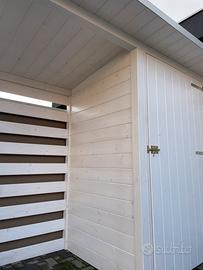 CASETTA IN LEGNO CON PORTICO PORTALEGNAIA SU MISURA STRUTTURA IN LEGNO LAMELLARE E PERLINATO DI PRIMA SCELTA TETTO CON PERLINATO , GUAINA ARDESSIATA , TEGOLA CANADESE E GRONDE VERNICE ALL’ACQUA COLORE A SCELTA PIU FINITURA PER ESTERNO E INTERNO CON TRASPORTO E MONTAGGIO PER INFORMAZIONI CHIAMARE AL MAIL nicolasvicente@hotmail.it
