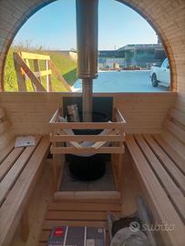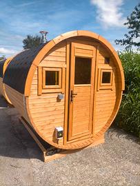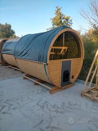 Sauna a botte 2.5 m, posti max 6, con stufa a legna Harvia M3 alimentazione interna, 4 finestre. 5.000 €