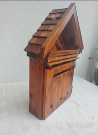 Cassetta per la posta o Portachiavi in legno a forma di casetta, completamente un legno, fatta a mano mai usata però c'è da sistemarla in 2 punti (manca una scandola e 1 delle cerniere laterali da sostituire).