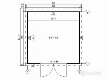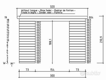 Proiezione in pianta del tetto: 325X260 cm