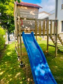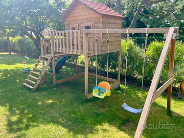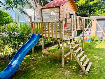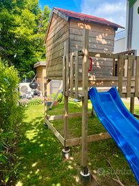 Vendo casetta in lego con serramenti , scivolo e altalena , gia montata (2gg di lavoro) . 3 anni di scarso utilizzo , sempre trattata con impregnante neutro a base acqua. Ritiro a mano con mezzi proprio