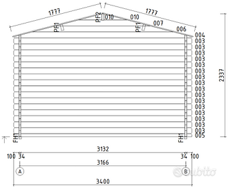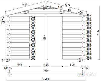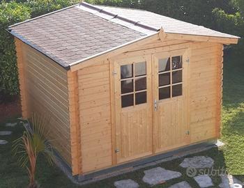 MOD. AMBRA 340X340 CM - 34 mm - CASETTA IN LEGNO Il legno nordico di alta qualità, permette una longevità della casetta portautensili fuori dal comune. Prezzo per ritiro in magazzino. Eventuali consegne a preventivo La ns azienda è accreditata MEPA, ovvero siamo certificati dal Ministero dell'economia e delle finanze a fornire le Pubbliche Amministrazioni CARATTERISTICHE DEL PRODOTTO: Larghezza (anteriore): 313.2 cm netta interna Profondità (laterale): 313.2 cm netta interna Larghezza porta: 142cm Colore: Naturale Forma a tetto: tetto a due spioventi - spessore tetto 18 mm maggiorato Spessore parete: 34 mm Superficie: 9.81 m² Altezza massima: 233.7 cm Altezza alla gronda: 193.8 cm Porta: Porta doppia 142.5xH183.1 cm Pavimento compreso: Si, spessore maggiorato 18 mm! Trattamento della superficie: Non trattato Raccorderia e minuteria maniglie: compresa Vetro porte: compreso iMBALLO: 360x118x60 cm CHIAMACI!
