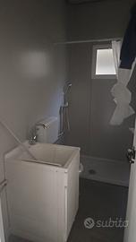 casetta coibentato 8,50 x 3 metri nuovo,con ingresso con divano e tavolo, bagno con doccia e vaschetta, scaldabagno e tutto arredato nuovo, cameretta con letto nuovo, camera matrimoniale con armadio a ponte e letto in ferro battuto nuovi, climatizzatore, finestre apribili normali,con zanzariere e grate antifurto,la casetta è nuova perfetta colore legno, quindi astenersi PERDITEMPO e CURIOSI, grazie mille.solo persone serie, info 3348214720 su WhatsApp.