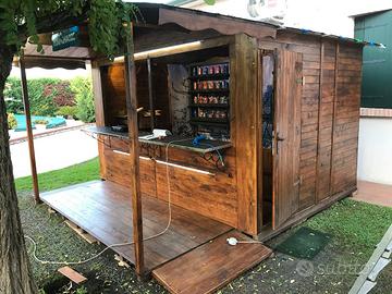 bella casetta artigianale no standard usufruibile in giardino i come ripostiglio con chiusura pedana e tettuccio ma in tal caso anche come chiosco munita di luci esterne e interne interruttore salva vita pavimentata completa di tutto affarone