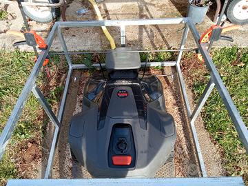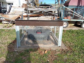 ricovero per robot tagliaerba ben fatta telaio in ferro coibentata con pannelli isopan tetto apribile per accedere al robot anche durante la parica porta automatica misure un metro per 80 per 45 con luce interna solare vero affare