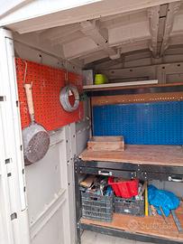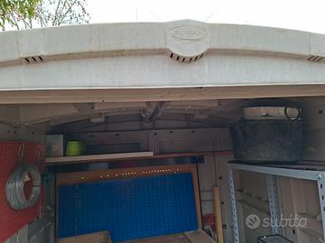 Casetta porta attrezzi, Composta di plastica dura Profondità 150cm lunghezza 165 cm altezza massima 205cm Ha 2 piccoli fori sul tetto che dono stati riparati. Totalmente smontabile. Ultimo prezzo. Ritiro a carico dell'acquirente