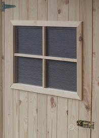 Casetta fornita in kit con assemblaggio particolarmente semplice e rapido da eseguire, costruita con doghe in pino massello da 16 mm non impregnate.