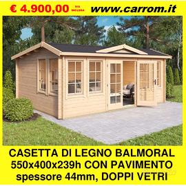 € 4.900,00CASETTA DI LEGNO BALMORAL 550x400x239h CON PAVIMENTO spessore 44mm, DOPPI VETRI DGP+;