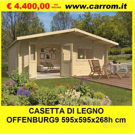 € 3.650,00 CASETTA DI LEGNO OFFENBURG 8 595x505x268h cm spessore 40 mm senza pavimento, doppi vetri;