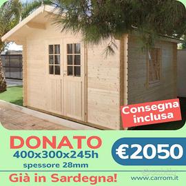 €2.050,00 CASETTA DI LEGNO DONATO 400x300x245h cm SPESS.28 mm CON PAVIMENTO;