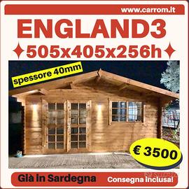 €3.500,00 CASETTA DI LEGNO ENGLAND3 505X405X256H CON PAVIMENTO spessore 40mm senza guaina, tetto verandato 522x485;