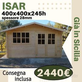 €2.440,00 CASETTA DI LEGNO ISAR 28mm di spessore 400x400x245h cm, CON PAVIMENTO wk 17;