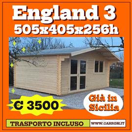 €3.500,00 CASETTA DI LEGNO ENGLAND3 505X405X256H CON PAVIMENTO spessore 40mm senza guaina, tetto verandato 522x485;