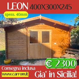 €2.300,00 CASETTA DI LEGNO LEON 400X300X245 40mm con pavimento, senza guaina;