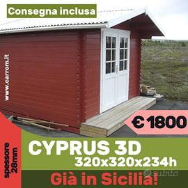 €1.800,00 CASETTA DI LEGNO CYPRUS 3D 320x320x234H cm spessore 28mm, con pavimento;